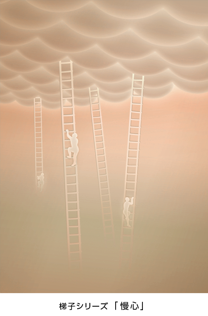 ▶ 主な使用画材は カラージェッソ・アクリル板・鏡・シナ合板